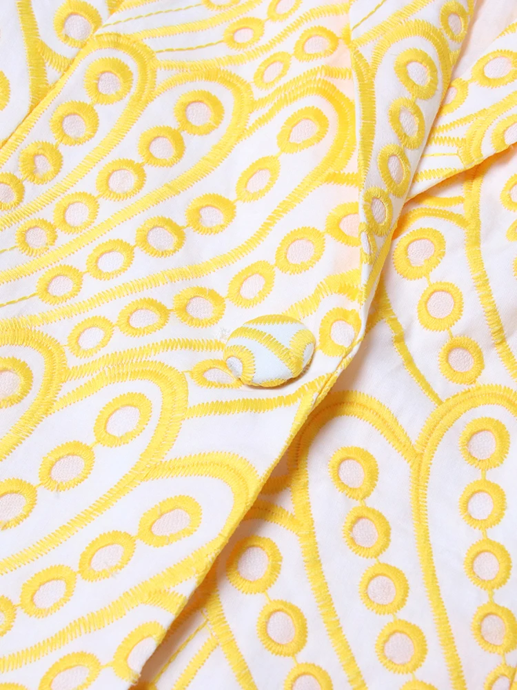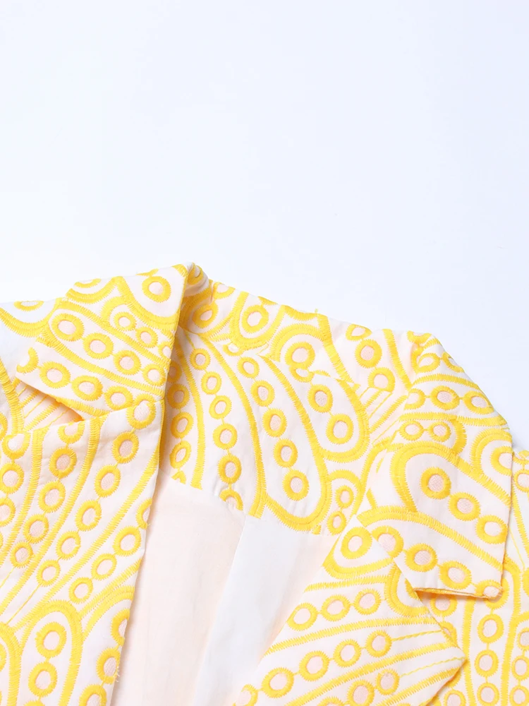 TWOTWINSTYLE Slim Embroidery Women Print Colorblock Cut Out Blazers