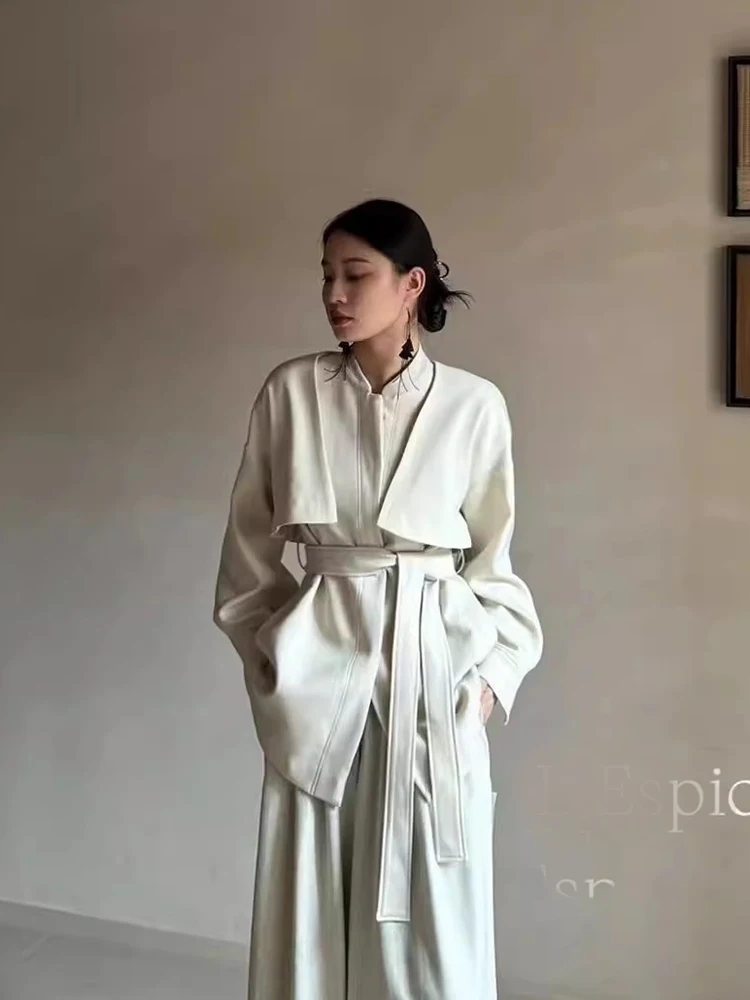 TWOTWINSTYLE Solid Casual Spliced Lace Up Women Minimalist Coats