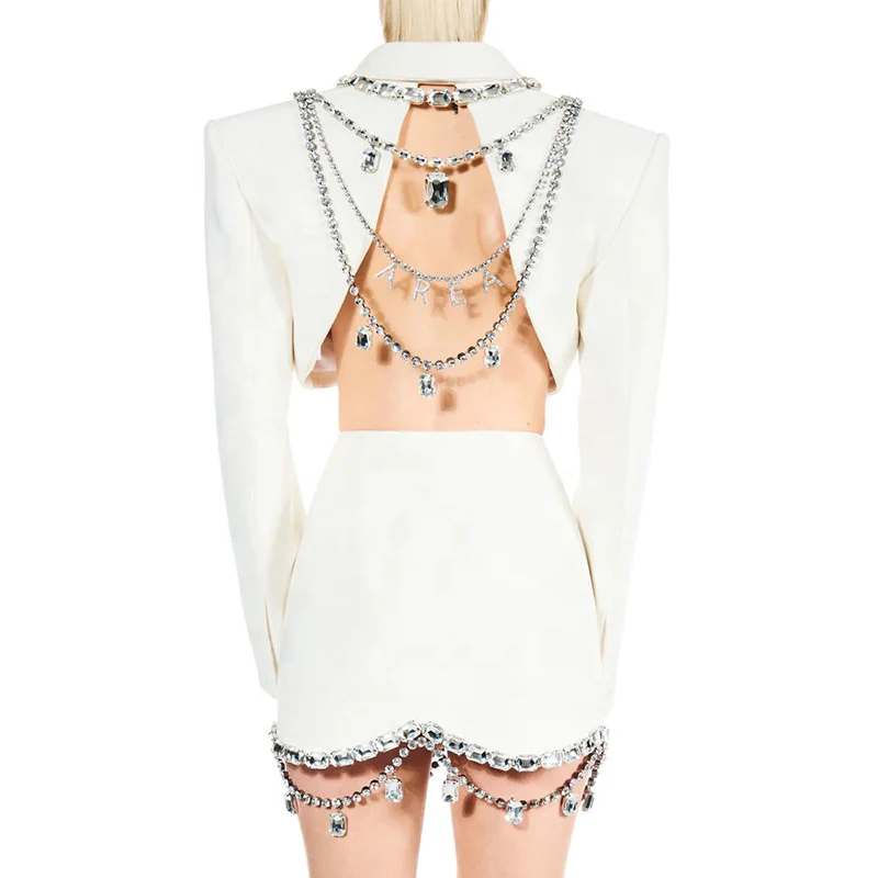 TWOTWINSTYLE Solid Formal Spliced Diamonds Women Backless Blazers