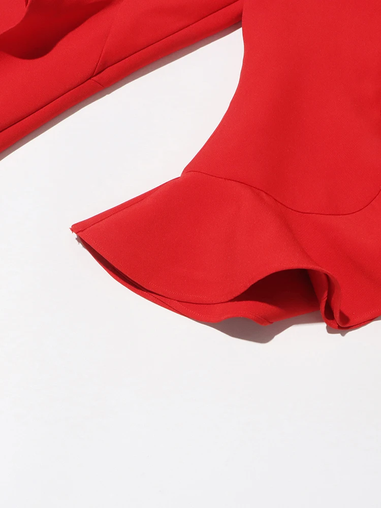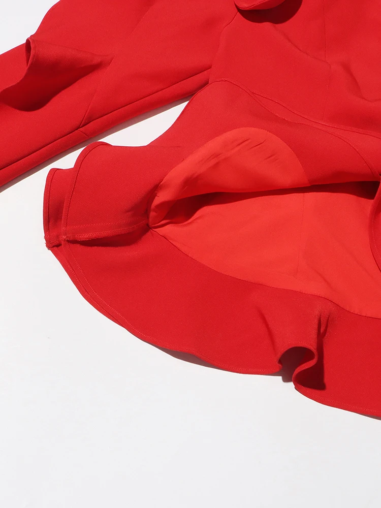 TWOTWINSTYLE Solid Designer Spliced Ruffles Irregular Women Chic Blazers