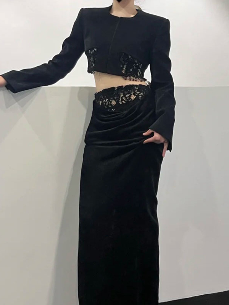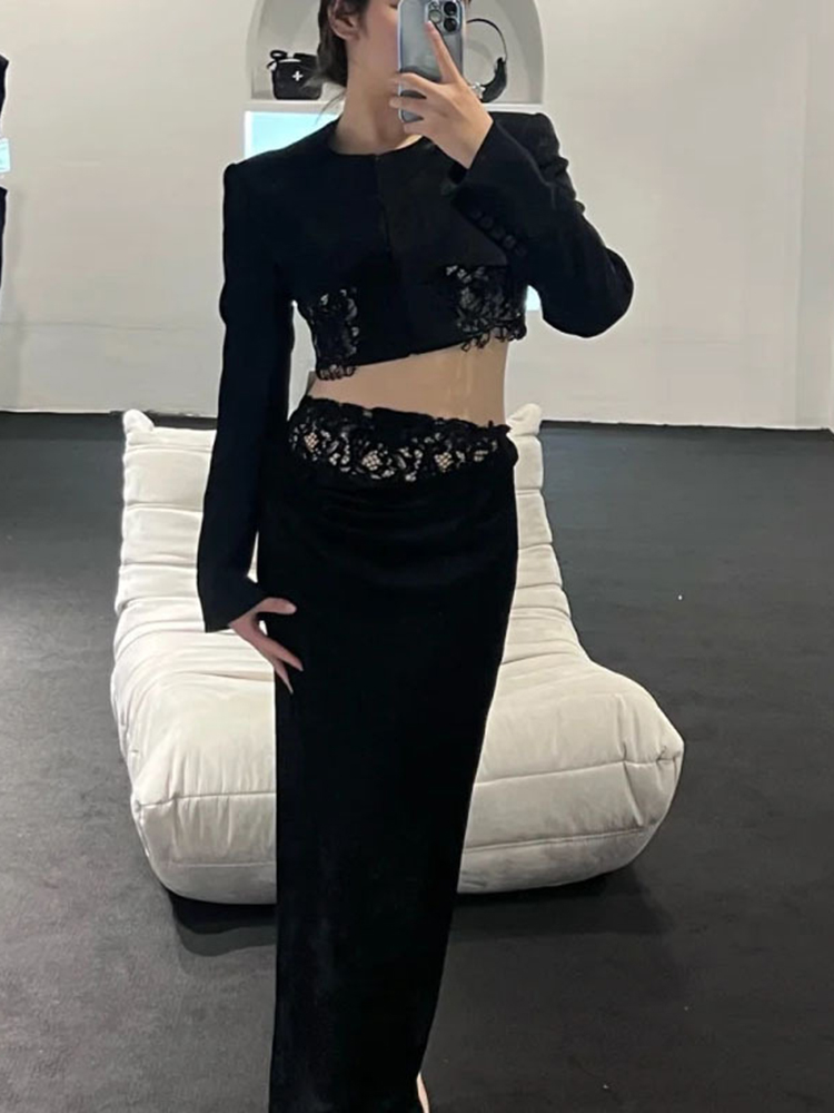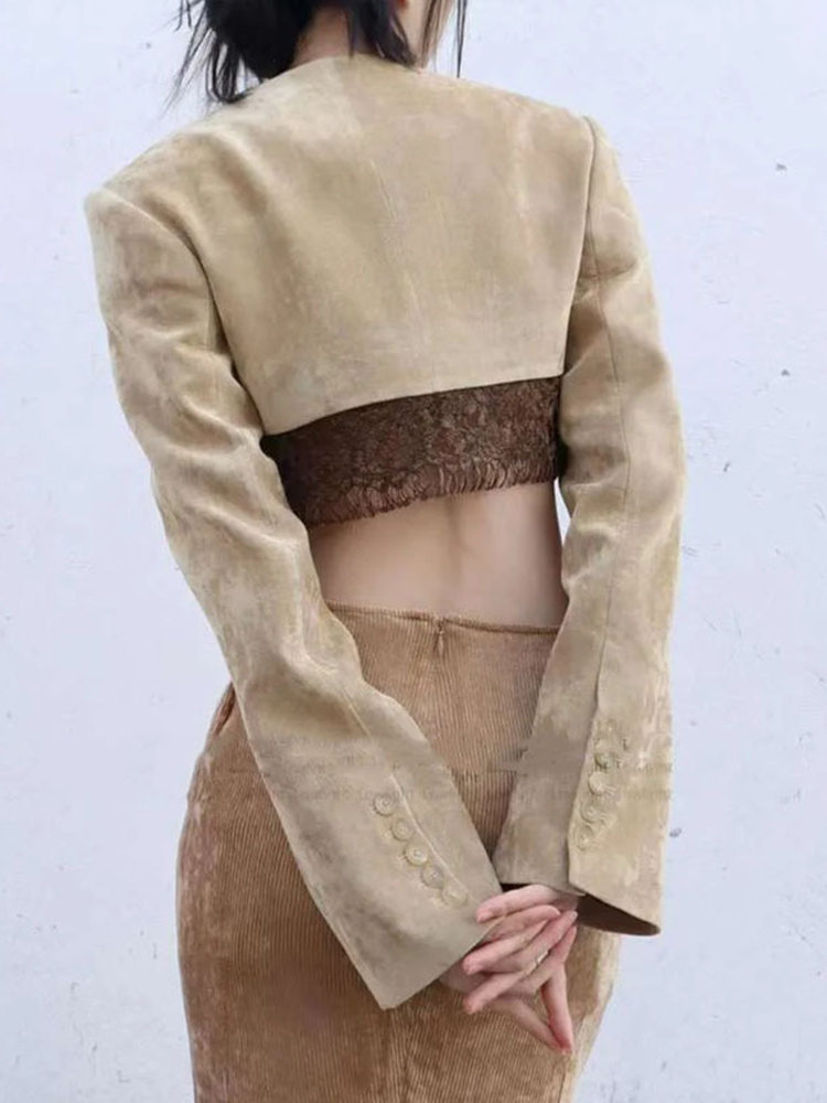 TWOTWINSTYLE Solid Temperament Patchwork Lace Women Elegant Coats